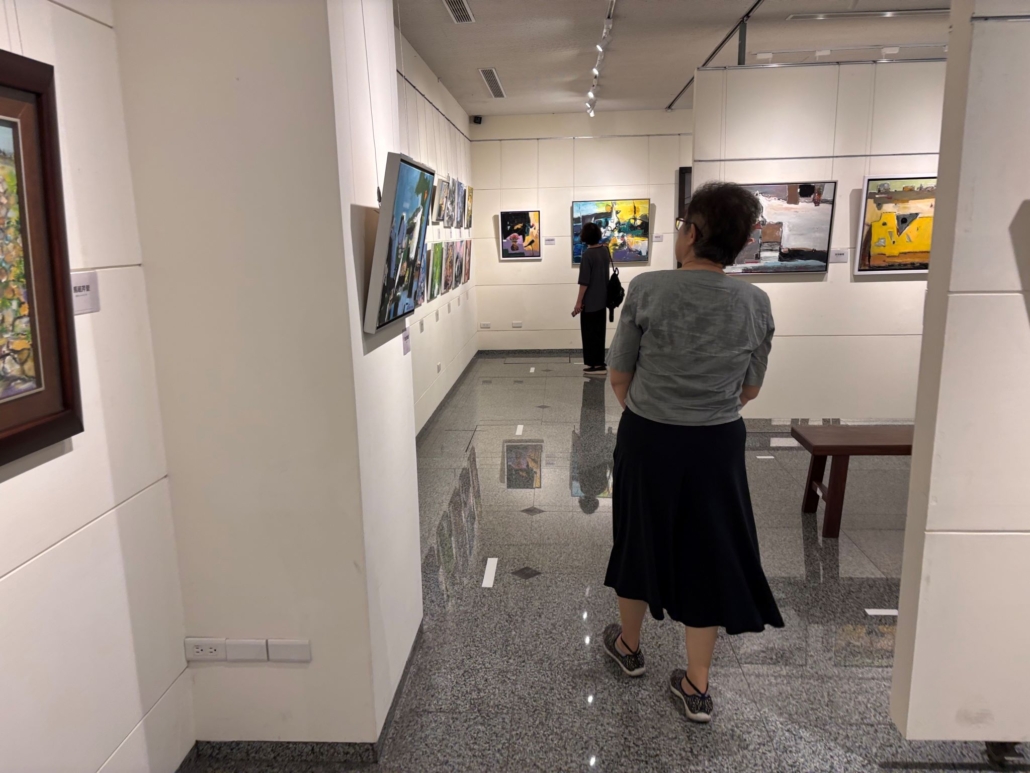 《離形‧心象—林金田繪畫創作展》共展出林金田老師近年創作的油彩作品57件,風格橫跨具象、半抽象與抽象三大領域。展覽以「離形‧心象」為題,呼應林老師藝術創作從形象描繪轉向內在心境表述的歷程。具象系列如《成美和園》、《永靖餘三館》、《忠實第夕陽餘暉》等,特別描繪彰化永靖地方風景與歷史建築,筆觸溫潤、色彩飽滿,展現藝術家對在地文化的深情連結。而抽象作品如《光影迷航》、《唯美的呢喃》等,則以自由流動的色彩與節奏構圖,傳達心靈世界的律動與感受。正如法國文學家普魯斯特所言:「真正的發現之旅,不在於尋找新的風景,而是擁有新的視野。」林金田老師透過藝術之眼,重新觀看生活與文化,展開深富意義的創作旅程。展覽現場亦展出林老師多年收藏並親自打磨的自然形石,來自台灣各地山林溪流,形成自然與藝術對話的獨特形式,展現其延續藝術眼光與美感鍛鍊於生活之中的實踐面貌。