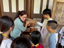 營隊以「做中學、玩中學」提升孩子的學習動機,讓品格教育自然融入日常行動。每日安排感恩分享環節,鼓勵學員上台表達,培養自信與反思能力。課程也安排孩子走進榮獲「環境教育設施場所」認證的成美公堂,從場域中理解飲水思源與孝親感恩的價值,同時欣賞傳統建築之美。課程最後,孩子親自擔任導覽員,向家長解說園區歷史風貌,並獲頒「小小導覽員」證書,為學習歷程留下具體成果。